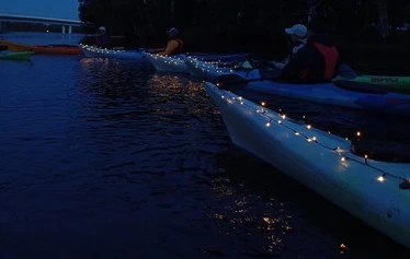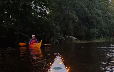 The kayaking trip is a low-threshold trip that is suitable for kayakers of all levels. Come and explore the beautiful river delta by water. We paddle in the delta at dusk and dark. The kayaks are dimly lit from the front deck and the city lights also help with visibility. However, please bring your own headlamp.